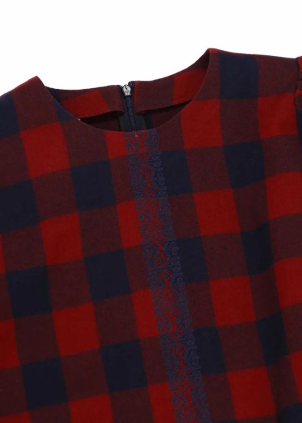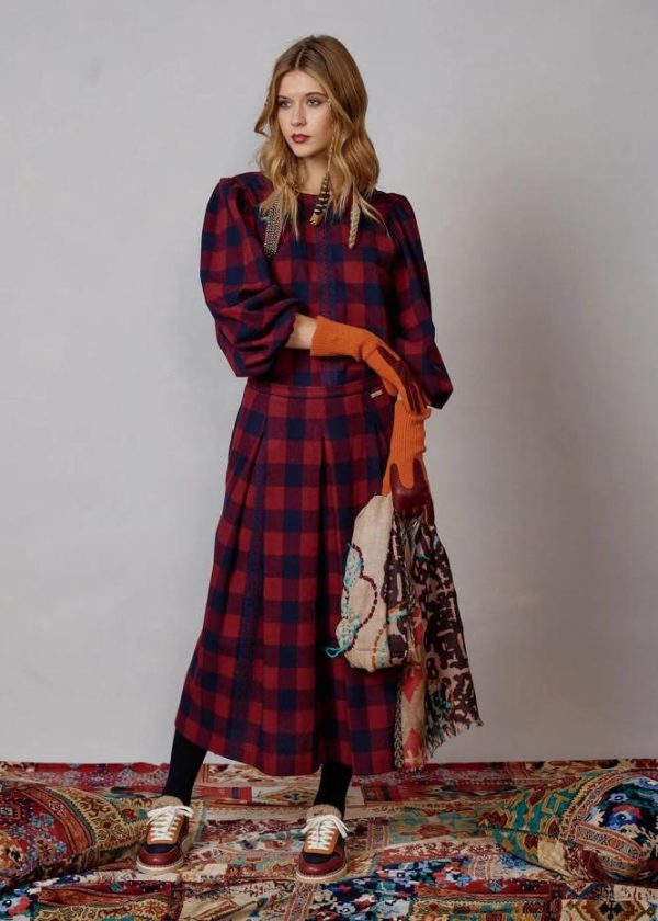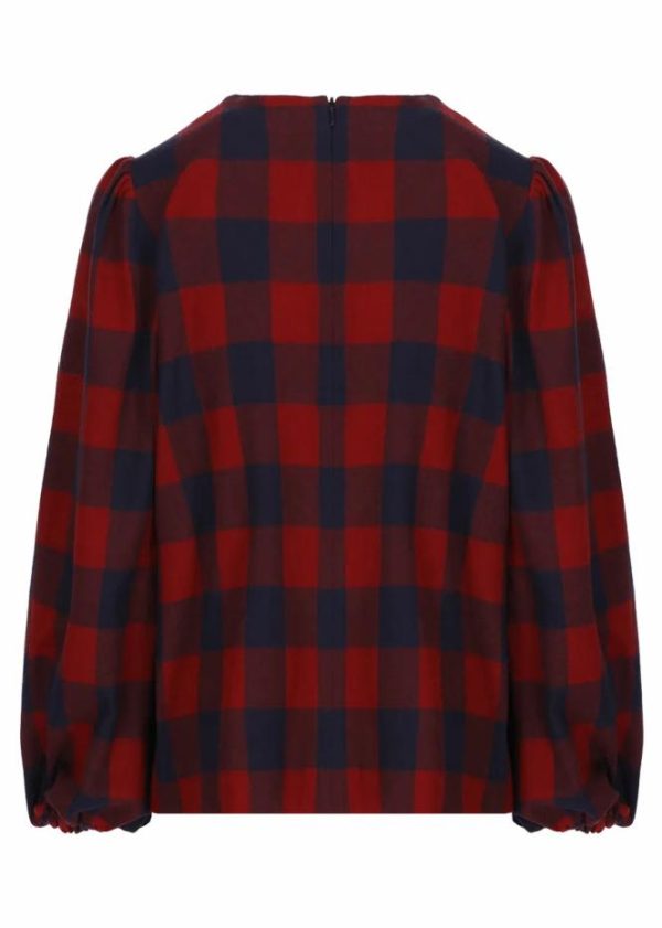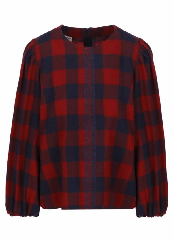 - Diese Bluse aus reiner Schurwolle mit Buffalo-Karomuster und Rundhalsausschnitt bekommt durch ihre Ballonärmel mit betonter Schulter und gerafften Bündchen, sowie ihre Ethno-Stickerei vorne einen verspielt-femininen Charakter.