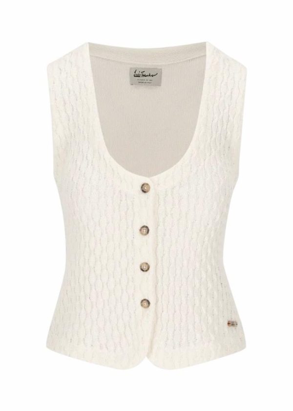 - Diese figurbetonte Strickweste im Regular Fit mit tiefem U-Ausschnitt und durchgehender Knopfleiste besteht aus reiner Bio-Baumwolle und ist vorne im Zopfmuster gestrickt, während sich der Rücken im Perlstrick präsentiert.